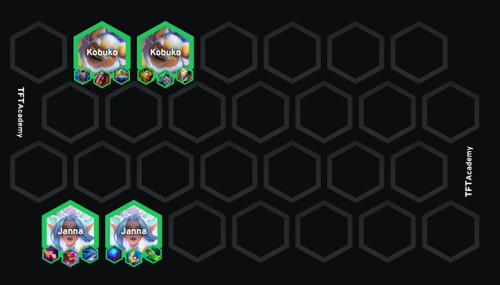 ジャンナとコブコをリロールし☆3にしてコブコが耐えている間にジャンナで敵を倒していくのが強み。